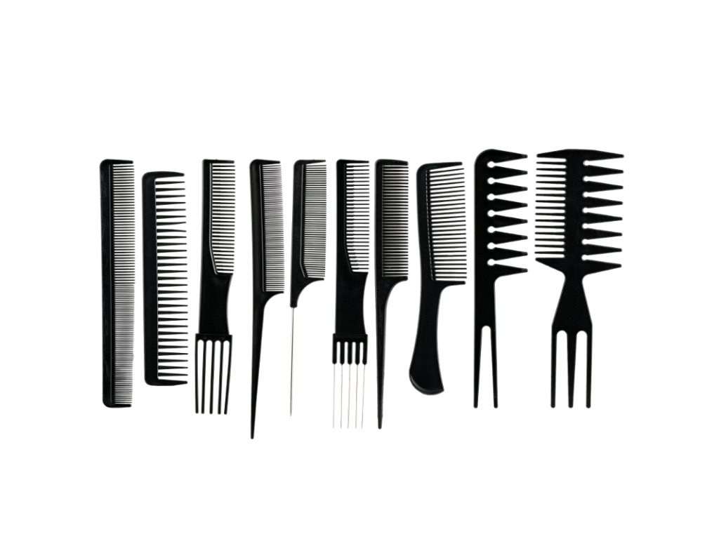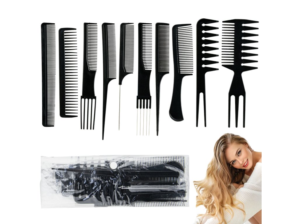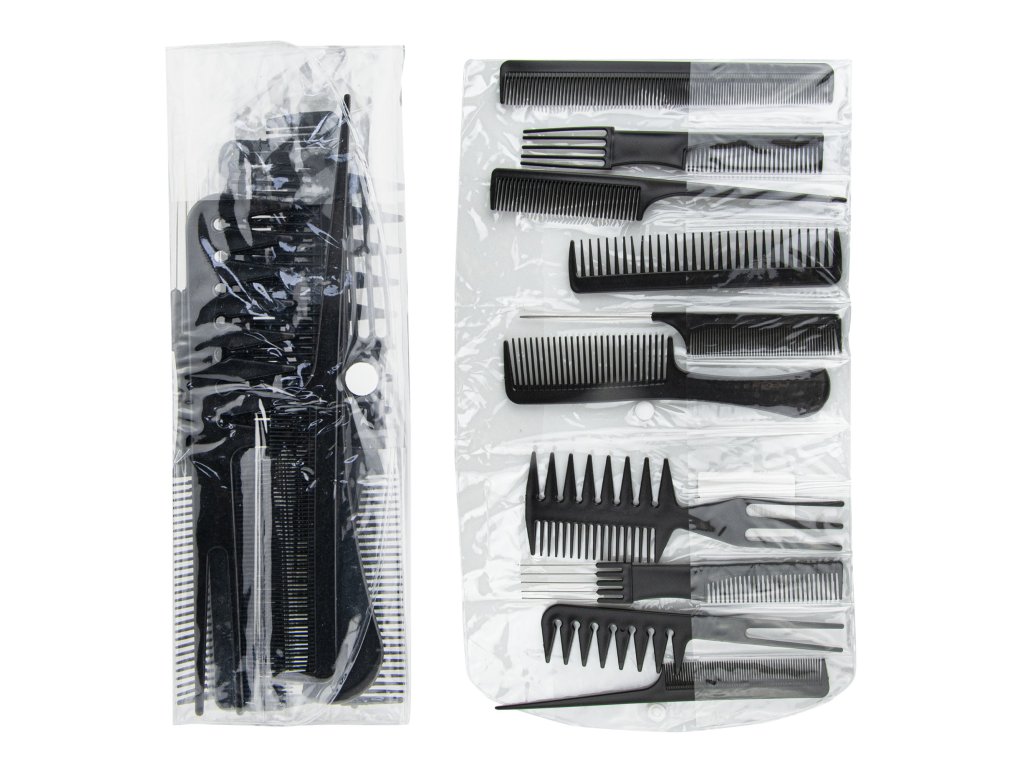 Sada 10 hřebenů pro profesionální i domácí použití.