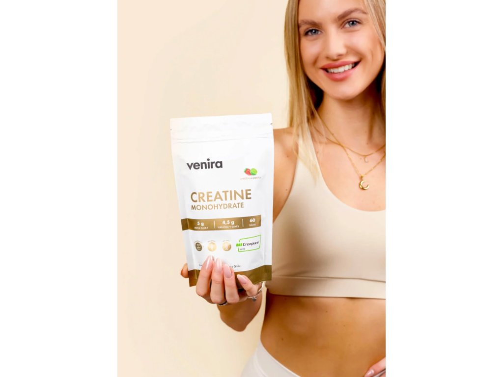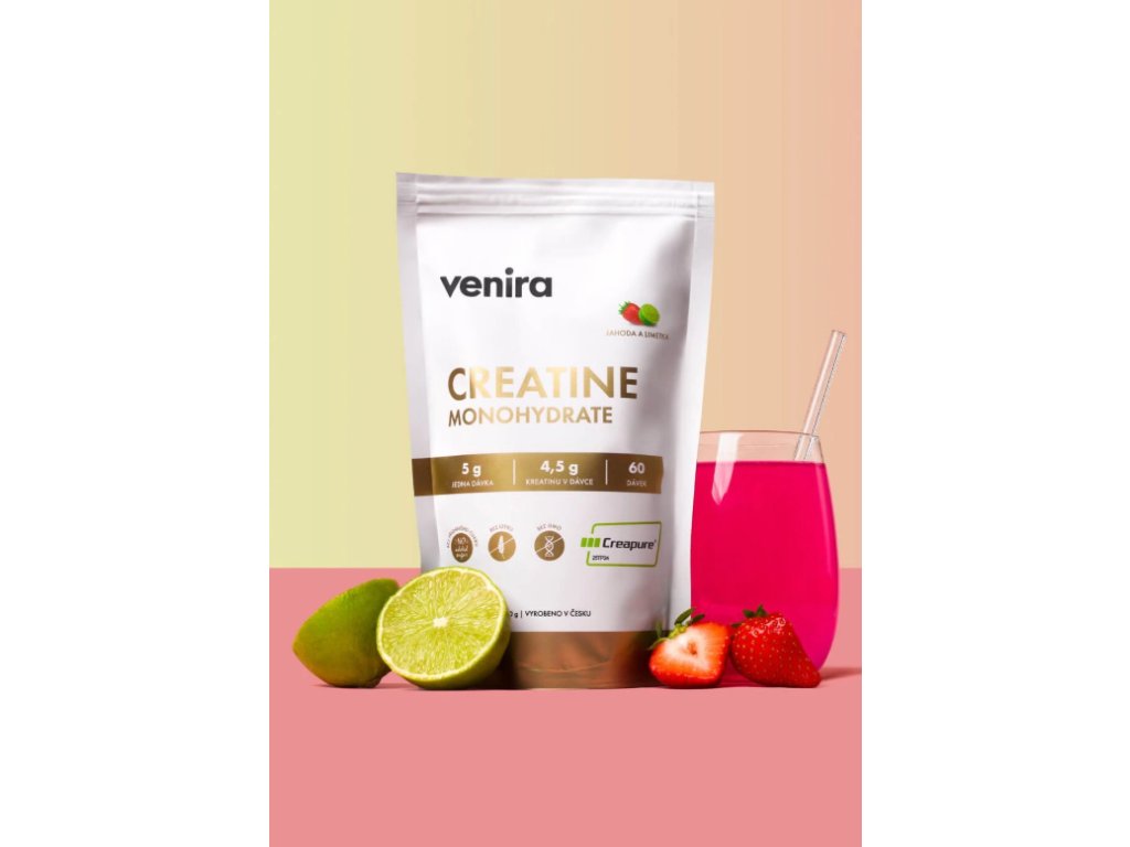 Nejlépe vstřebatelný jemný prášek s příchutí jahody a limetky v podobě kreatinu monohydrátu bez přidaných aditiv či plniv pro budování svalové hmoty, urychlení regenerace a posílení kognitivních funkcí.