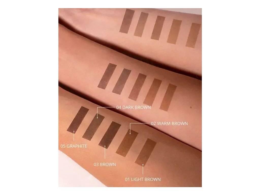03 Hnědá - univerzální odstín pro světle hnědé a tmavší obočí, vytváří efekt klasické, neutrální hnědé.